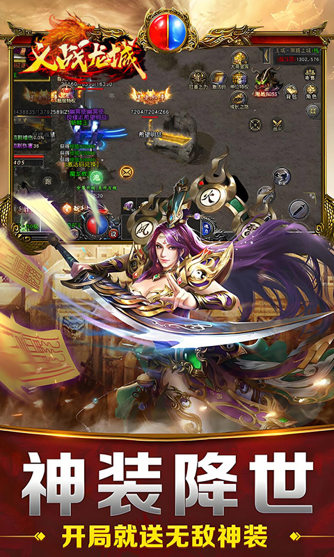 《义战龙城》是一款经典传奇高攻速高爆率0.1折暴爽打金版本手游,上线即拥有满攻速,超高爆率刀刀爆光柱,神装神器全能爆,登录免费万年魂环、老莫、大嫂、稀有称号时装等豪华大奖!专属强哥宝库海量道具真灵符回收畅快打金,所有充值0.1折,全场原版物价无套路!全新魂兽、魂环系统等你体验!